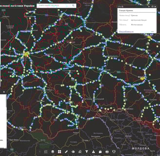 accumulate, store and display complex spatial information about transport routes (networks of highways, railways, sea and river transport routes, main pipelines, etc.);