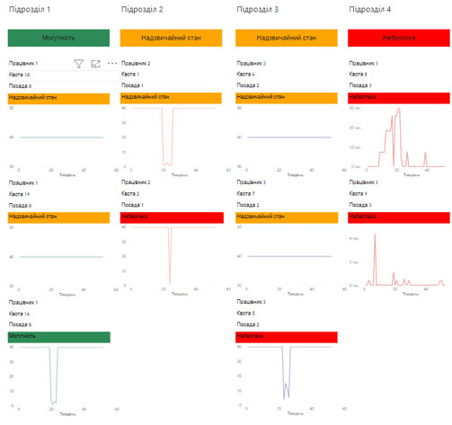 Зведена інформація про поточні квоти кожного працівника організації в одному місці.
